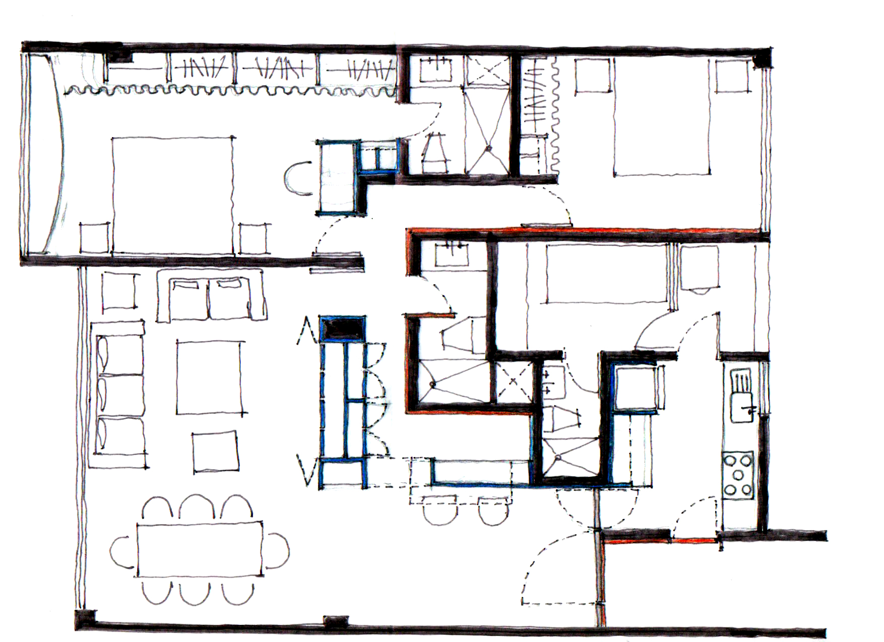 El diseño de interiores es a veces cuestión de remover lo que sobra y completar con sencillez. Este departamento es este caso, en el que se quitaron los tiroles y acabados existentes de muros para mostrar las texturas del block.