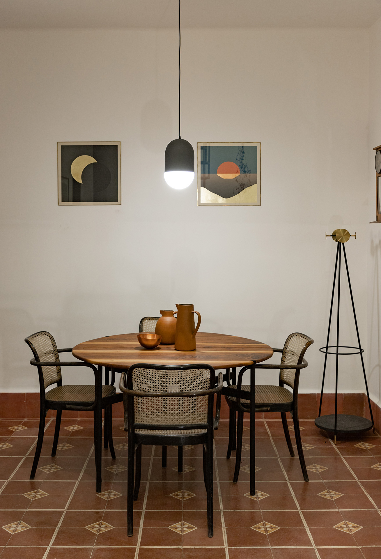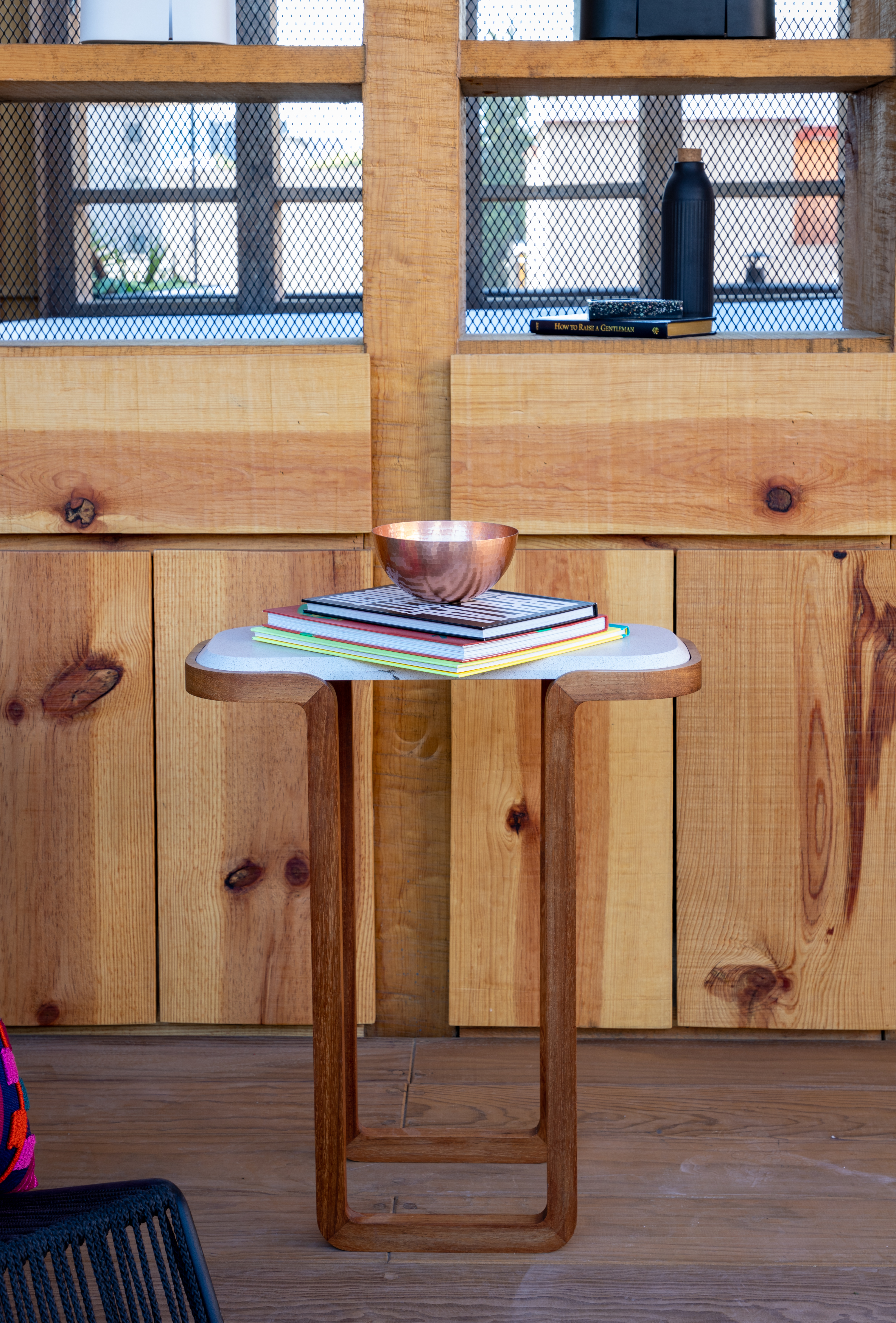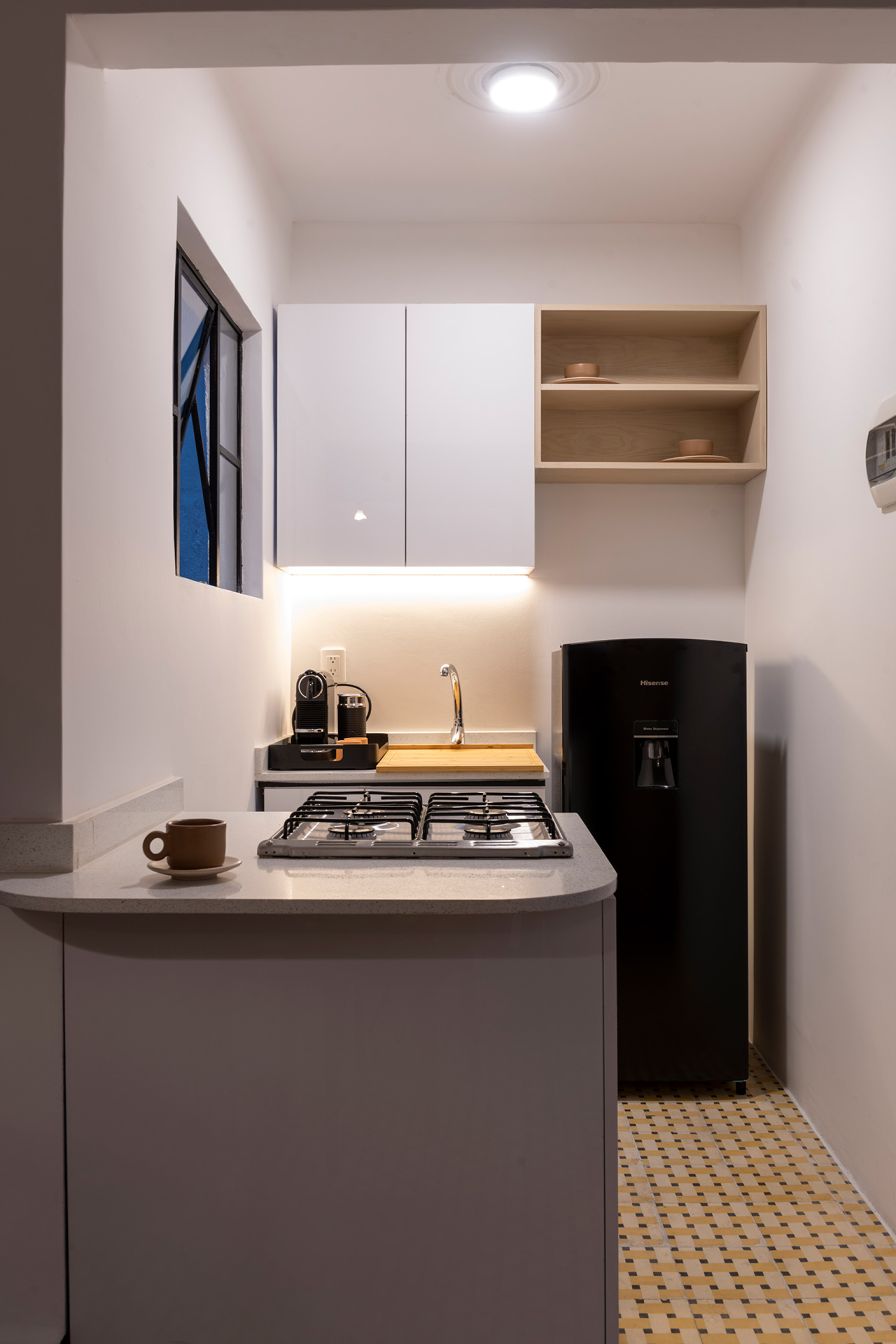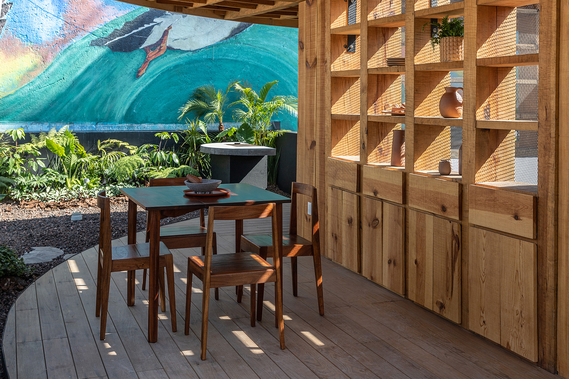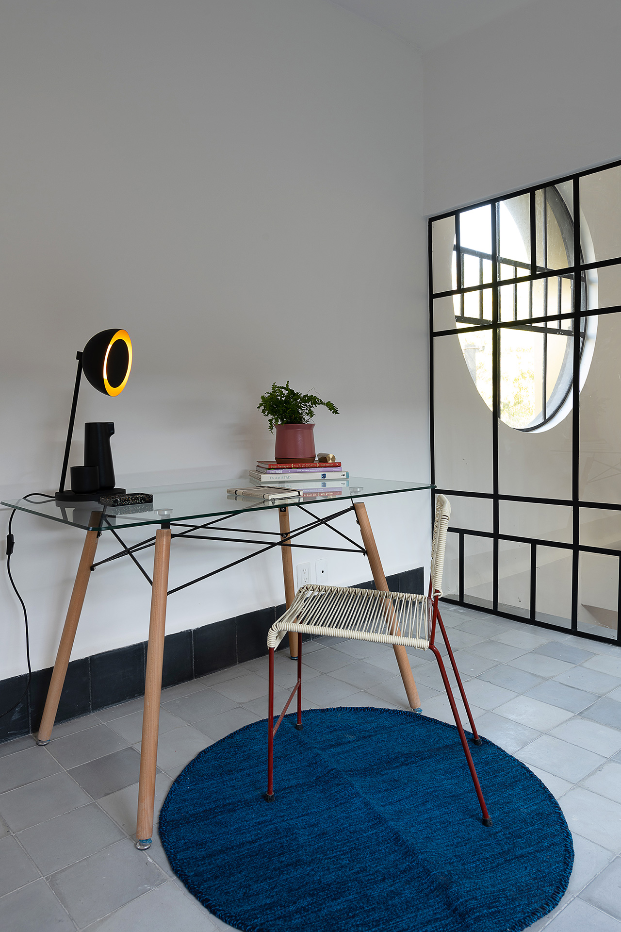 Para dar identidad y carácter a los interiores, el mobiliario se seleccionó distinto para cada vivienda, complementando los pisos de pasta de colores en contraste con los tonos blancos y negros de los muros y patios. Para esto se usaron muebles de diseño artesanal mexicano contemporaneo.