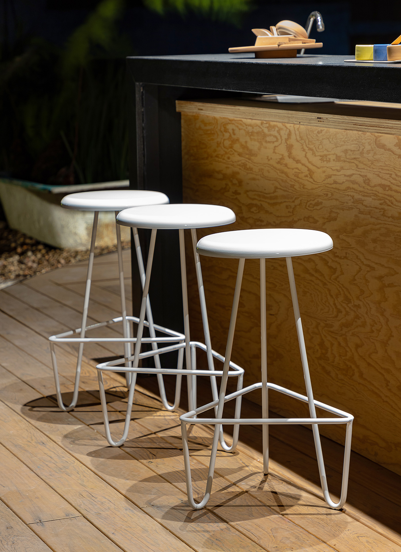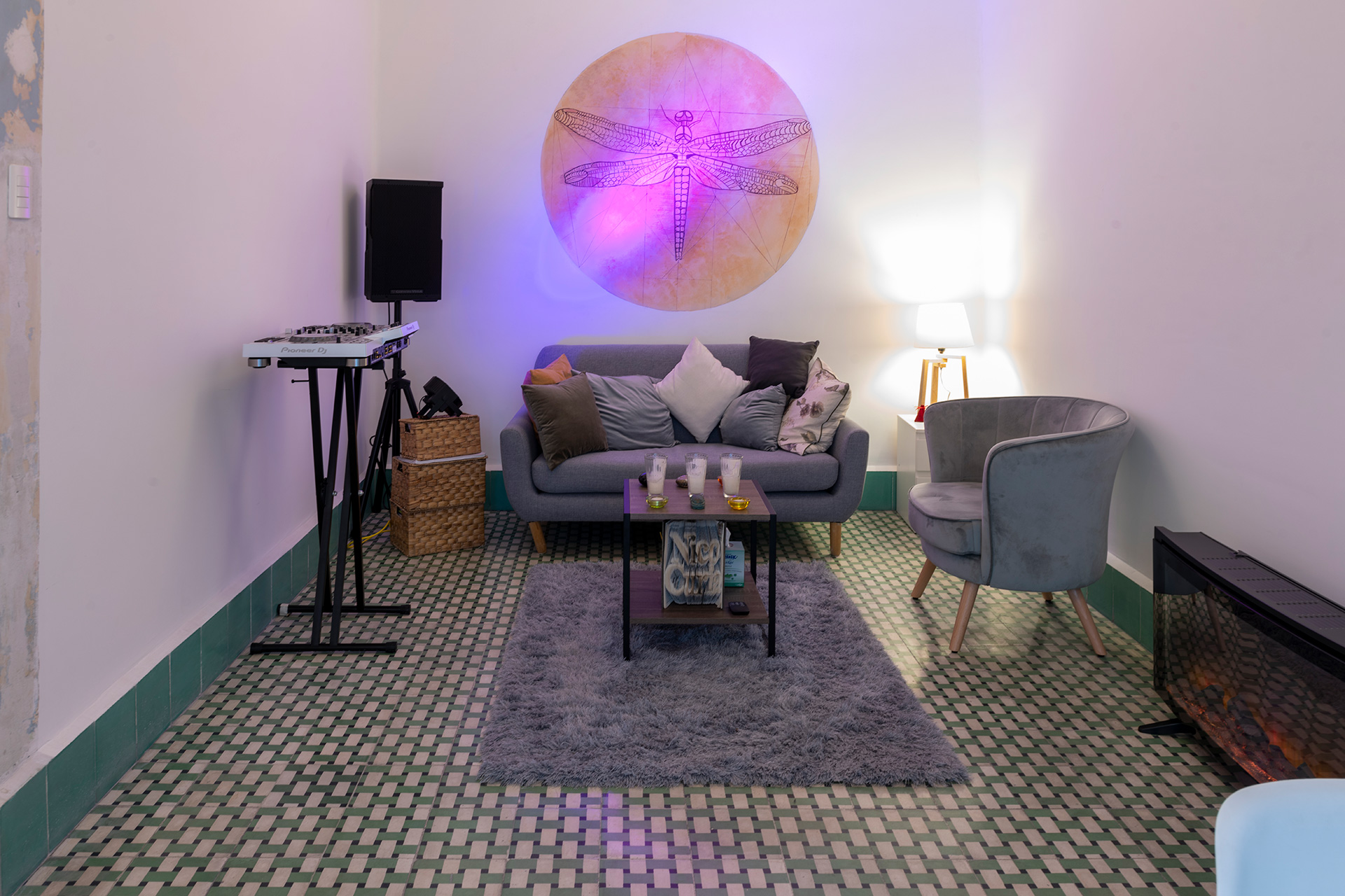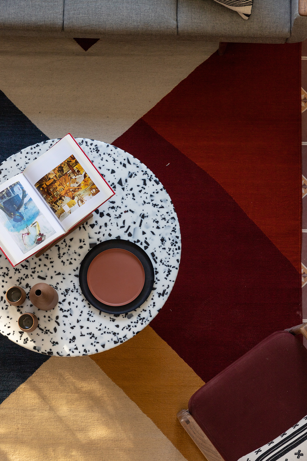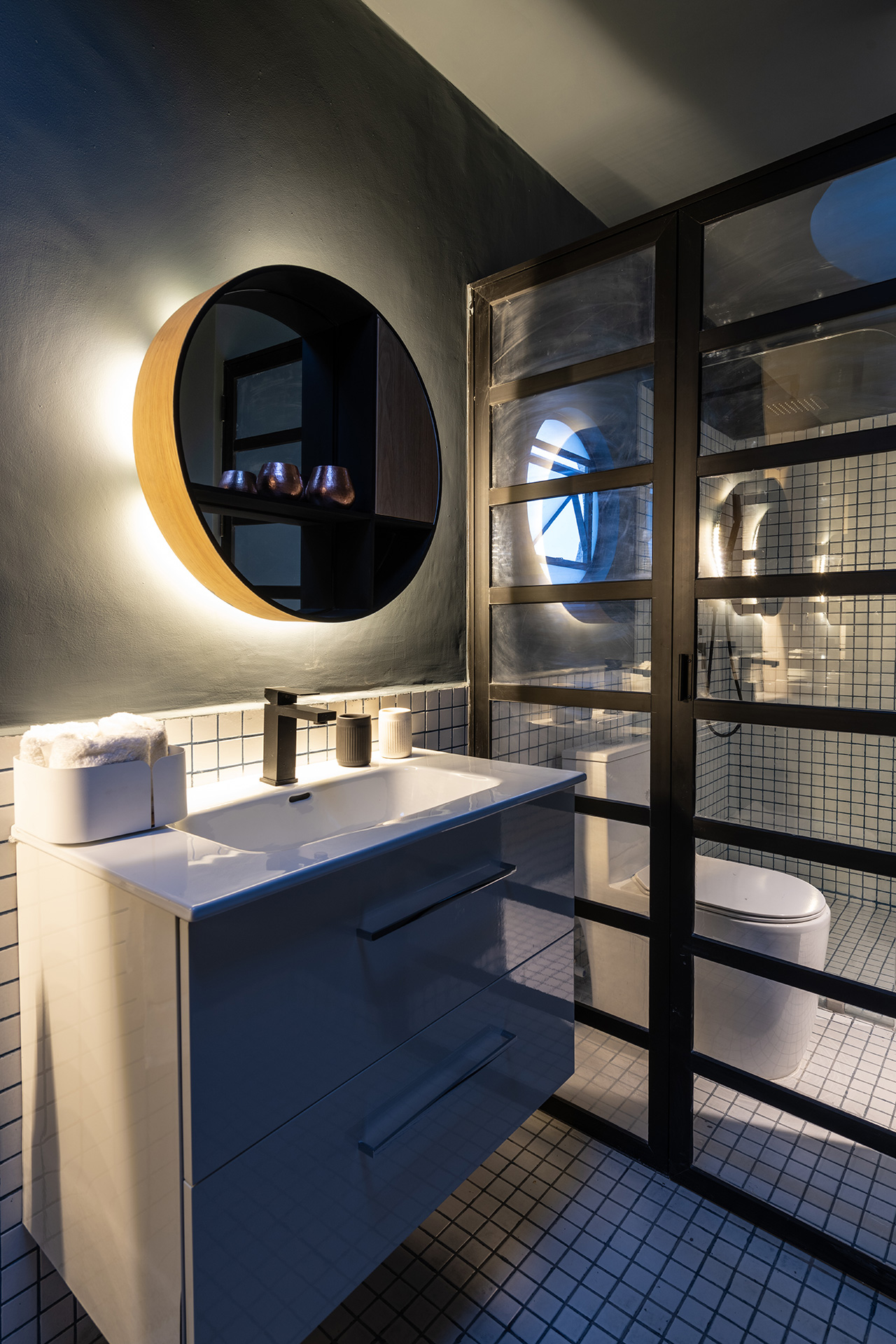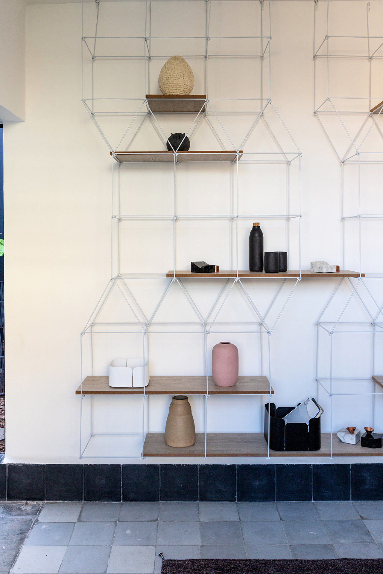 Para dar identidad y carácter a los interiores, el mobiliario se seleccionó distinto para cada vivienda, complementando los pisos de pasta de colores en contraste con los tonos blancos y negros de los muros y patios. Para esto se usaron muebles de diseño artesanal mexicano contemporaneo.