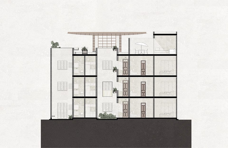 Ubicado en el corazón de la colonia Escandón, este proyecto consiste en la recuperación y restauración de un edificio de vivienda multifamiliar construido en 1949. La estrategia de diseño fue adaptar los 21 departamentos al estilo de vida contemporáneo interviniendo los servicios, además de la renovación de áreas comunes y amenidades mediante el diseño del paisaje.