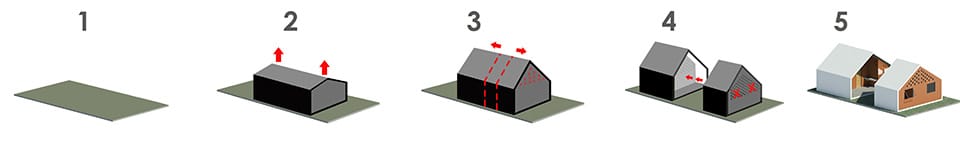 El desarrollador solicitó una casa tipo, para 38 familias en un pueblo de agricultores a 5 kilómetros de Pinotepa Nacional, Oaxaca. El proyecto fue una colaboración entre los arquitectos y la comunidad. Se hizo una reunión donde se le pidió a las familias que dibujaran la casa de sus sueños. Nosotros recopilamos esa información para definir los requerimientos comunes. Así las casas responden al clima, la topografía de los distintos terrenos de los propietarios y al estilo de vida de la comunidad.